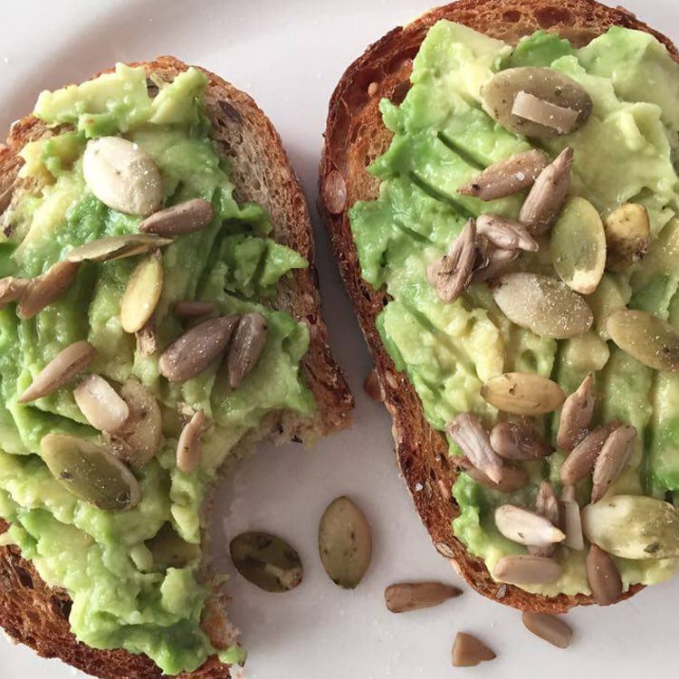 * Half avocado sprinkled with sunflower seeds and Celtic sea salt